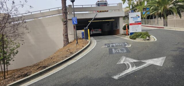 East Parking Structure is located between Harvey and Sinclair Avenue facing the 134 freeway. Make sure to enter on the first driveway on the right side going uphill and use the left side main entrance.