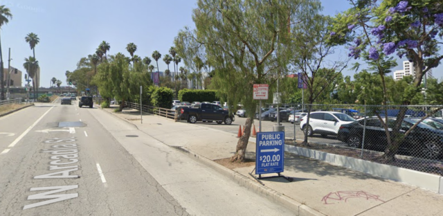 This outdoor lot has one entrance and one exit only. Entrance will be on W. Arcadia St.