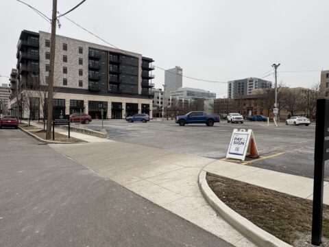 The lot is located at 300 West Main Street in Fort Wayne, IN. Entrance is located off Pearl Street.