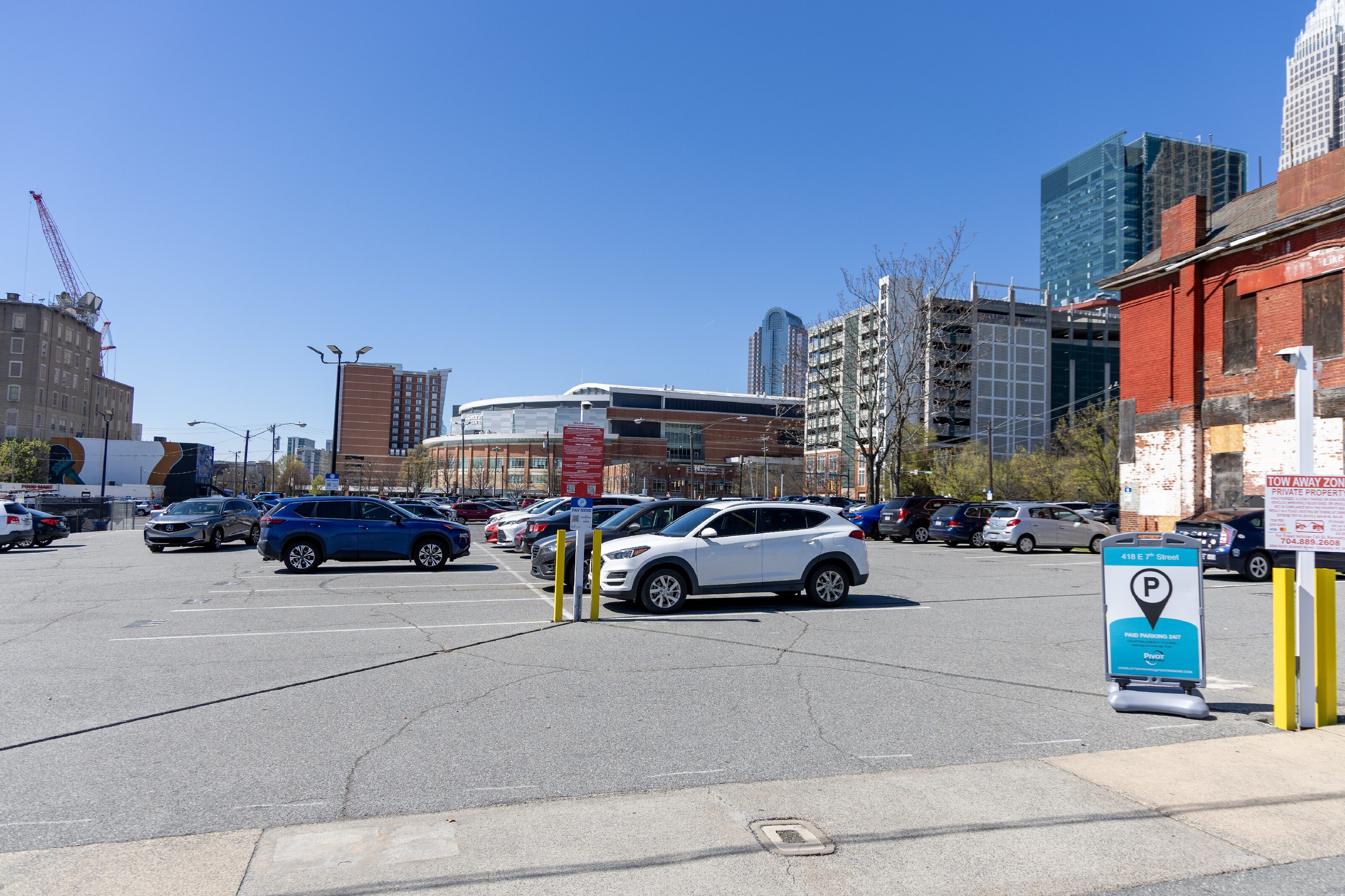 Paid surface lot in Uptown Charlotte offering convenient access to Spectrum Center, nearby offices, and other entertainment destinations. The location offers daily and monthly parking options, providing cost-effective and reliable solutions for Uptown commuters and visitors.