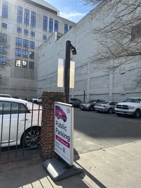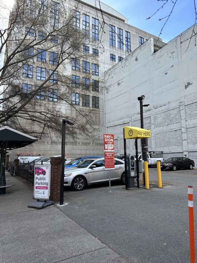 Pay station signage located throughout. This lot is monitored by license plate cameras and patrolled 7 days / week. Unauthorized parkers will be towed at owner’s expense.
