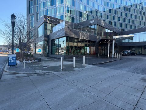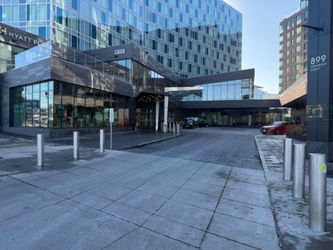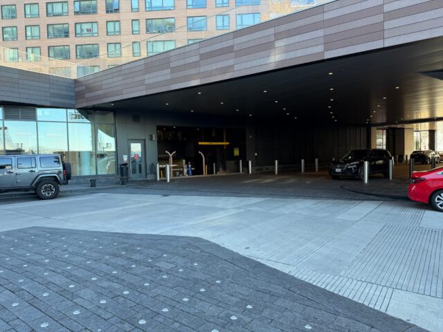 The garage entrance is located on Congress Street directly in front of the Hyatt Hotel. There is a central drive circle to pull into where customers will be greeted by the attendant staff and assisted with parking.