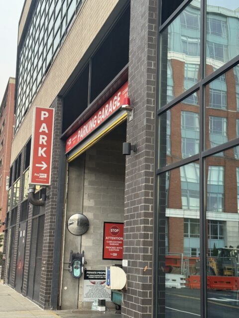 The garage is directly connected to the Park + Garden residential building