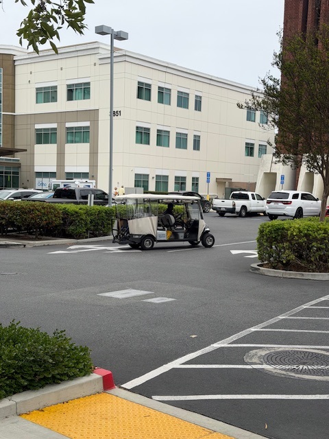 The parking lot/structure has 2 entrances. One being in between (3891 Katella Ave & 3851 Katella Ave) and the other off of Kaylor St. in between (3801 Katella Ave & 3791 Katella Ave) This lot is our main parking lot we also have trams to take you from one end of the campus to the other. We also have a small open lot in front of 3771 Katella Ave. which you can access off of Katella Ave.