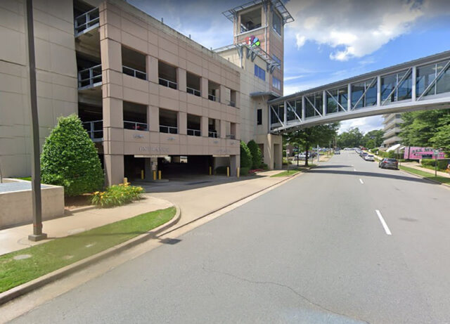 This indoor garage is located on the left side of W 6th St, just before the intersection with S Victory St. Look for a sign above the entrance that reads "Entrance" in silver.
